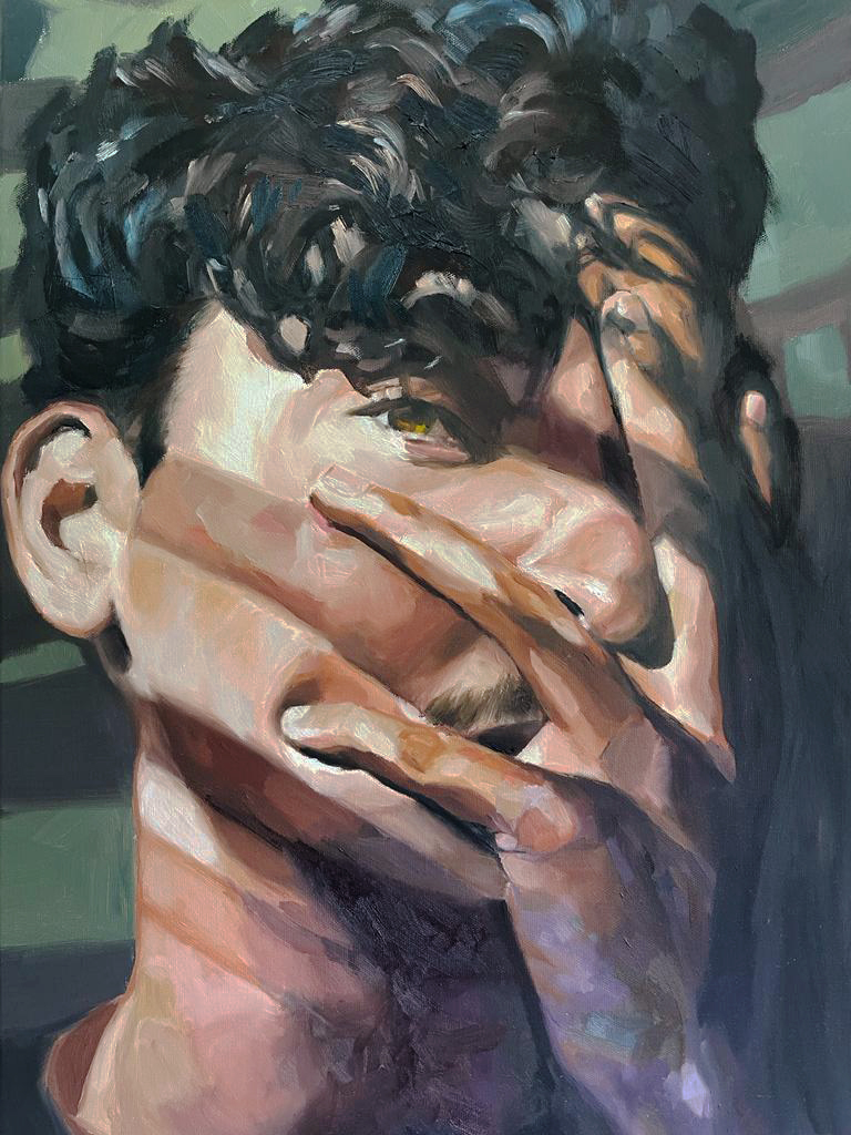 What we do in shadows is hidden in secrets and facades, revealing only half-truths and veneers, never the full picture. With one half of his face covered and the other half exposed, the subject’s features and expression are only partially revealed here, the other parts concealed in shadows and his own hand in an attempt to keep a distance from the viewer. Yet, the viewer is invited to stare directly into the subject’s eye that is caught in the light, an invitation to directly engage and connect with him but at the same time, revealing nothing. If one’s eyes can tell the truth, then perhaps the subject’s eye can reveal what the subject chooses to show, or what the viewer chooses to see.
