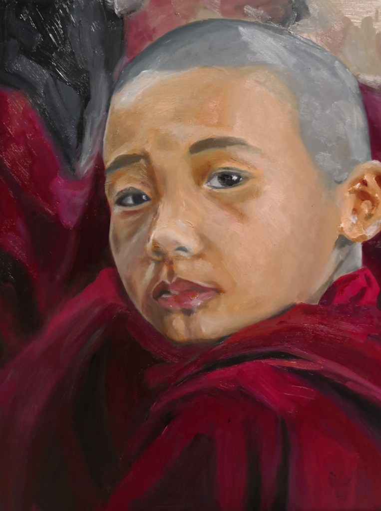 Her recent works shift beyond portraiture to reflect on public life and shared space. Paintings such as “Transit of Hope” and “Last Light, Singapore Bound” observe the emotional texture of Singapore’s everyday life — the small, unnoticed pauses between places and people. Through light, gesture, and composition, she explores how stillness can exist within movement, and how quiet dignity can be found in ordinary lives.